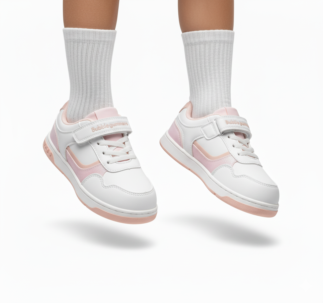 Presentamos los Bubblegummers perfectos: color blanco puro con toques de rosado chicle (bubblegum). Diseñados para las pequeñas aventureras, ofrecen la comodidad y el soporte que sus pies necesitan, sin sacrificar ese estilo adorable que tanto les gusta. ¡Listas para jugar, saltar y sonreír!