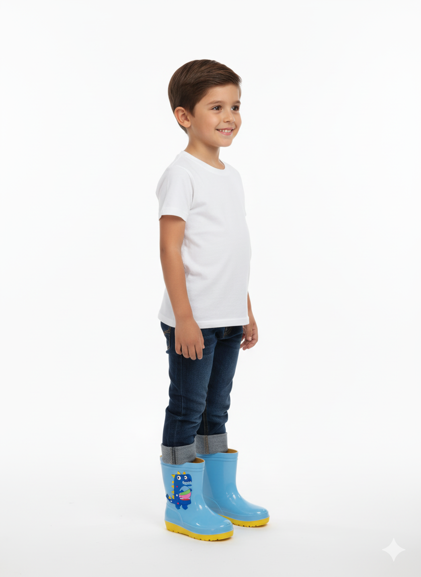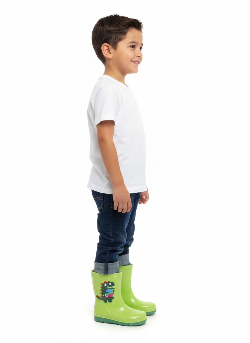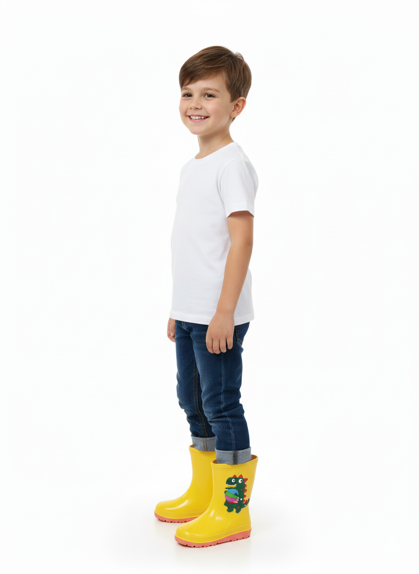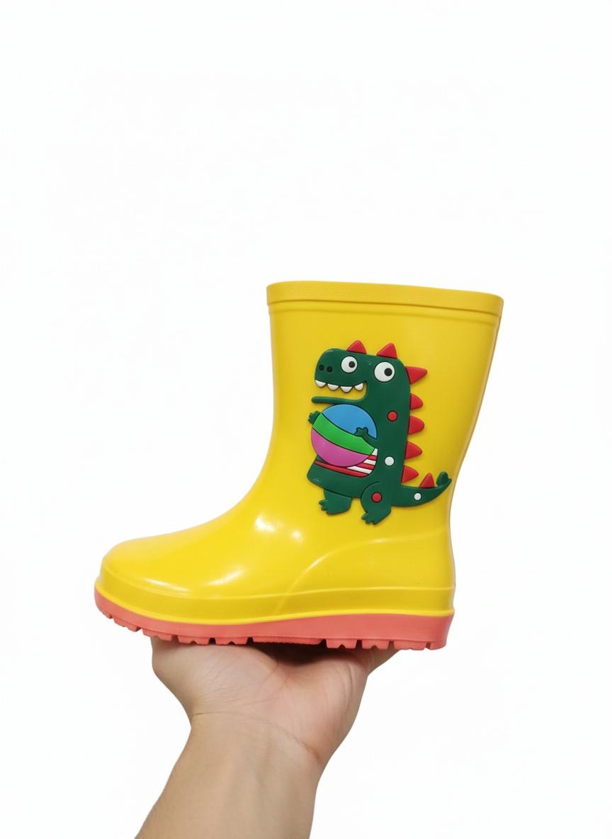 ¡Que la lluvia no detenga la diversión! 🌧️🦖 Con nuestras Botas de Lluvia Amarillas de Dinosaurio, tus pequeños aventureros estarán listos para explorar y saltar en cada charco. Su diseño vibrante y divertido de dinosaurio los hará sentir valientes y protegidos. ¡Perfectas para días lluviosos llenos de alegría!
