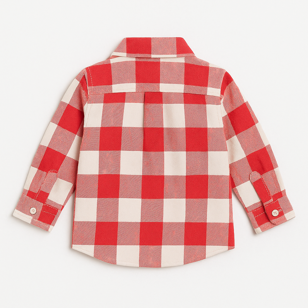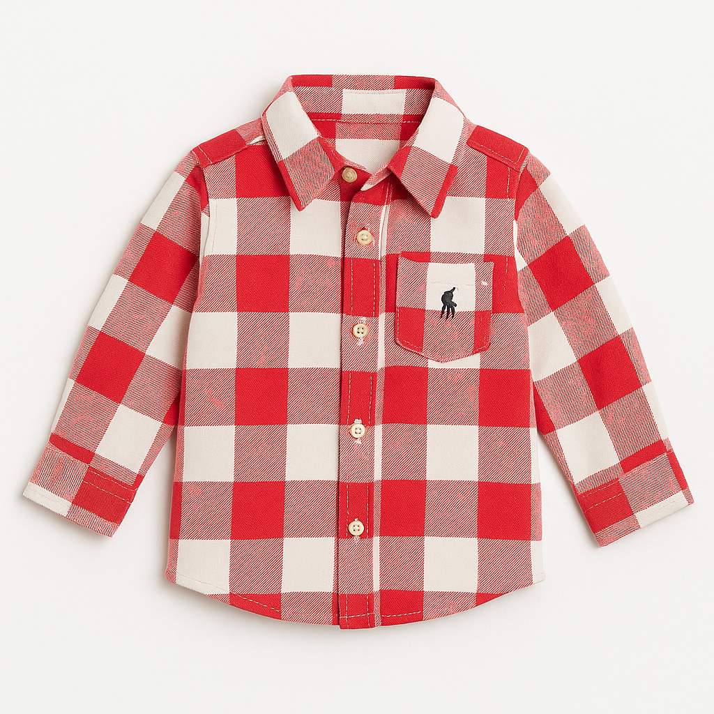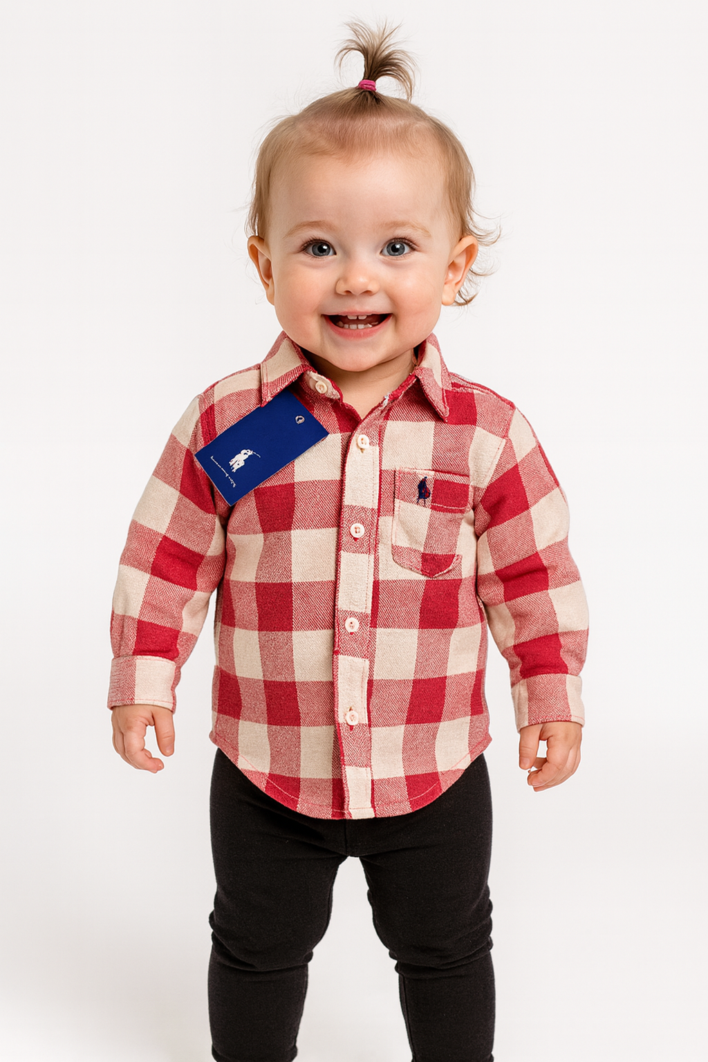 Nuestra camisa manga larga de niña combina un diseño moderno con la calidez ideal para cualquier ocasión. Su estampado de cuadros en tonos rojos y blancos le da un toque clásico y tierno, perfecta para días frescos o looks casuales con mucho estilo.