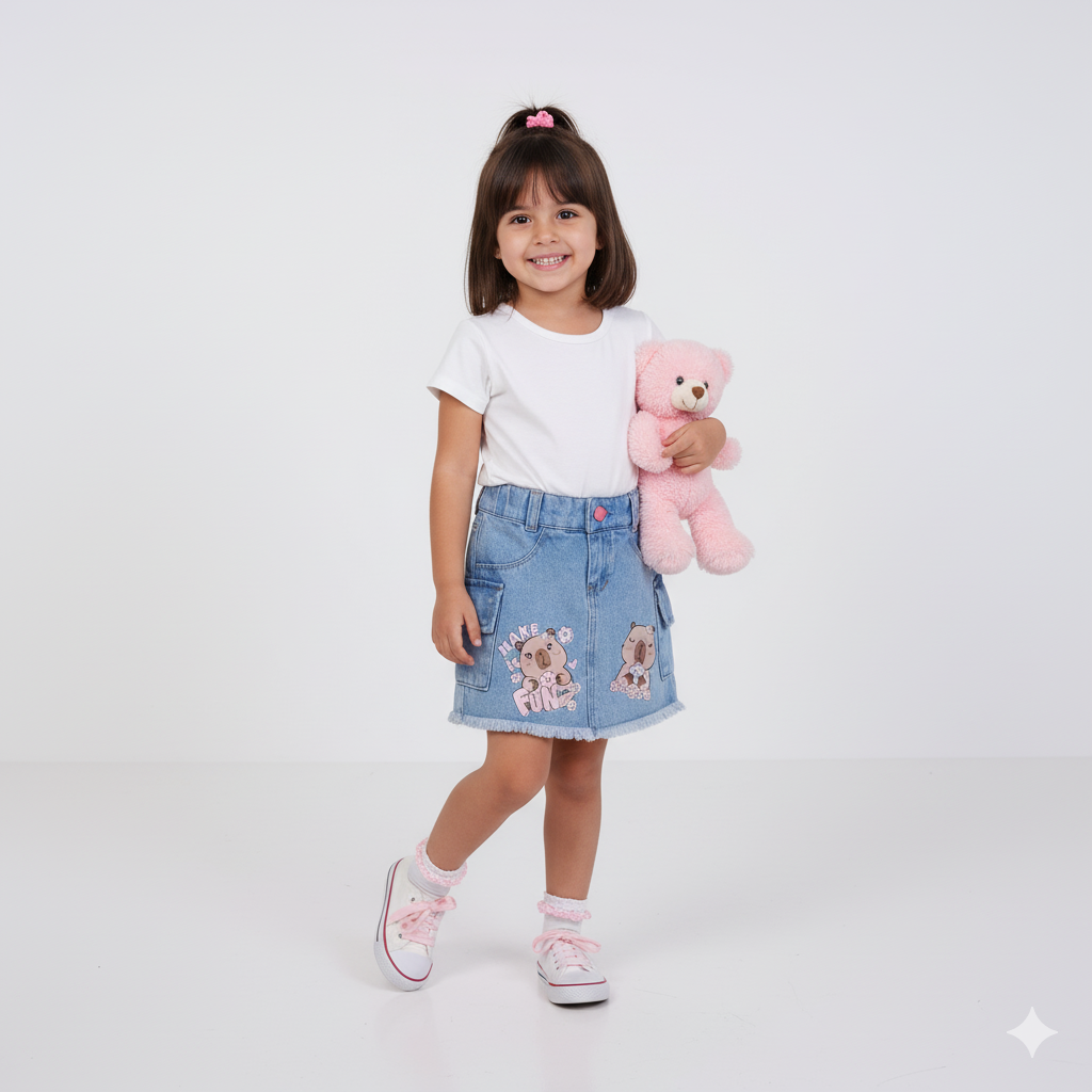 Renueva el armario de tu pequeña con nuestra increíble Falda de Jean. El denim clásico que nunca pasa de moda, ahora con un diseño súper cómodo y versátil.