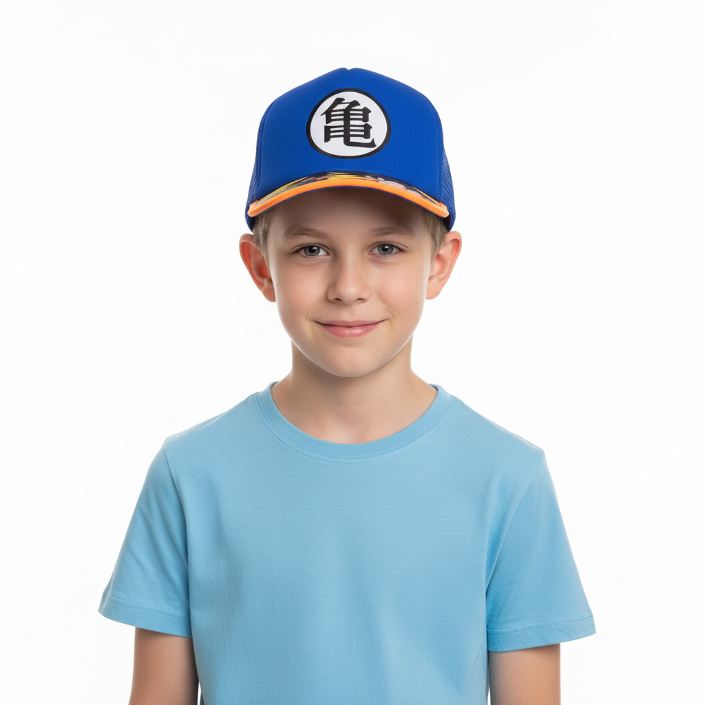 ¡Lleva el espíritu de Goku a todas partes! 💥 Esta gorra de Dragon Ball en azul rey y naranja es perfecta para los pequeños guerreros Saiyajin. ¡El accesorio ideal para cualquier fanático!