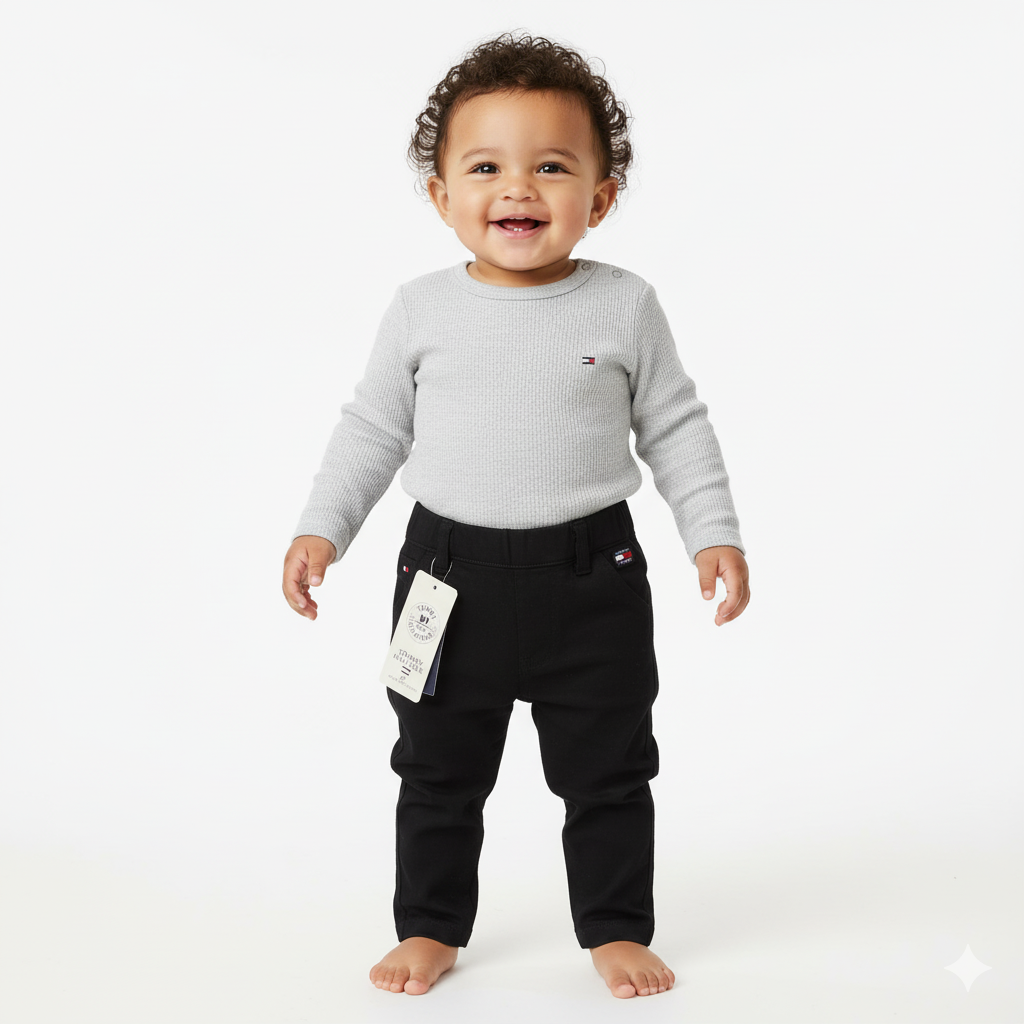 El negro es sinónimo de estilo y elegancia, ¡incluso para los más pequeños! Nuestro pantalón negro para bebé es la pieza clave para crear looks increíbles. Combina con todo y es perfecto tanto para un paseo por el parque como para un evento familiar.