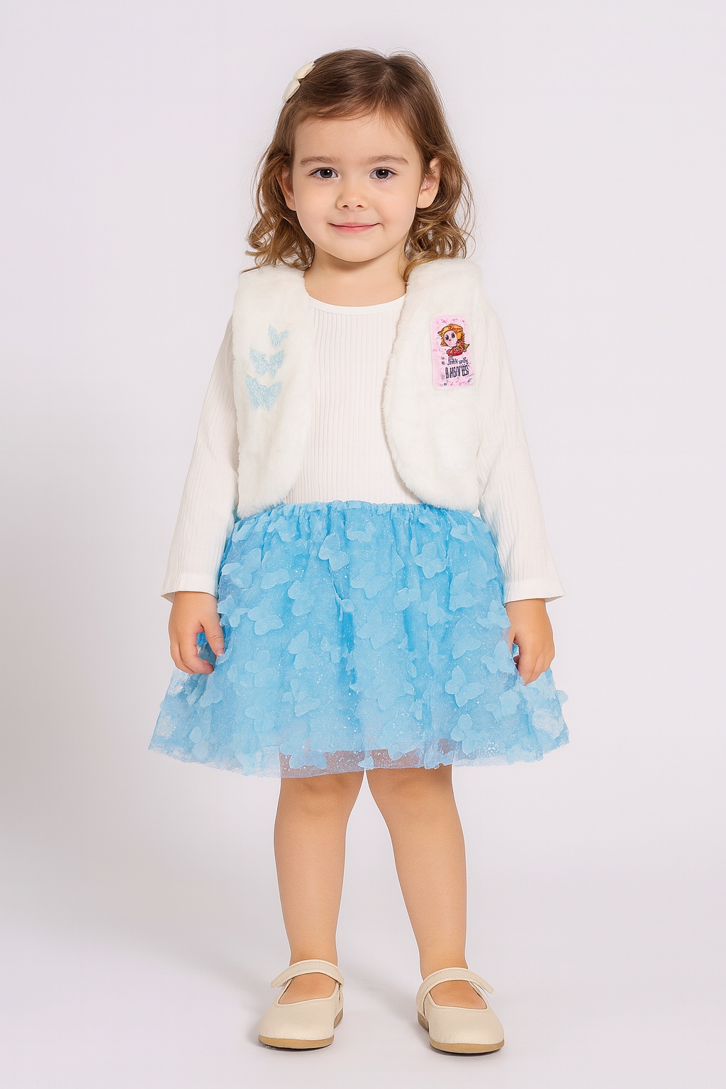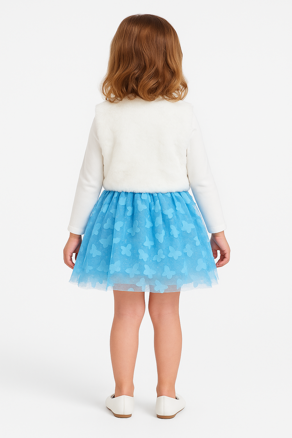 Su falda de tul con delicadas mariposas 3D y su chaleco suave crean un look tierno y elegante.